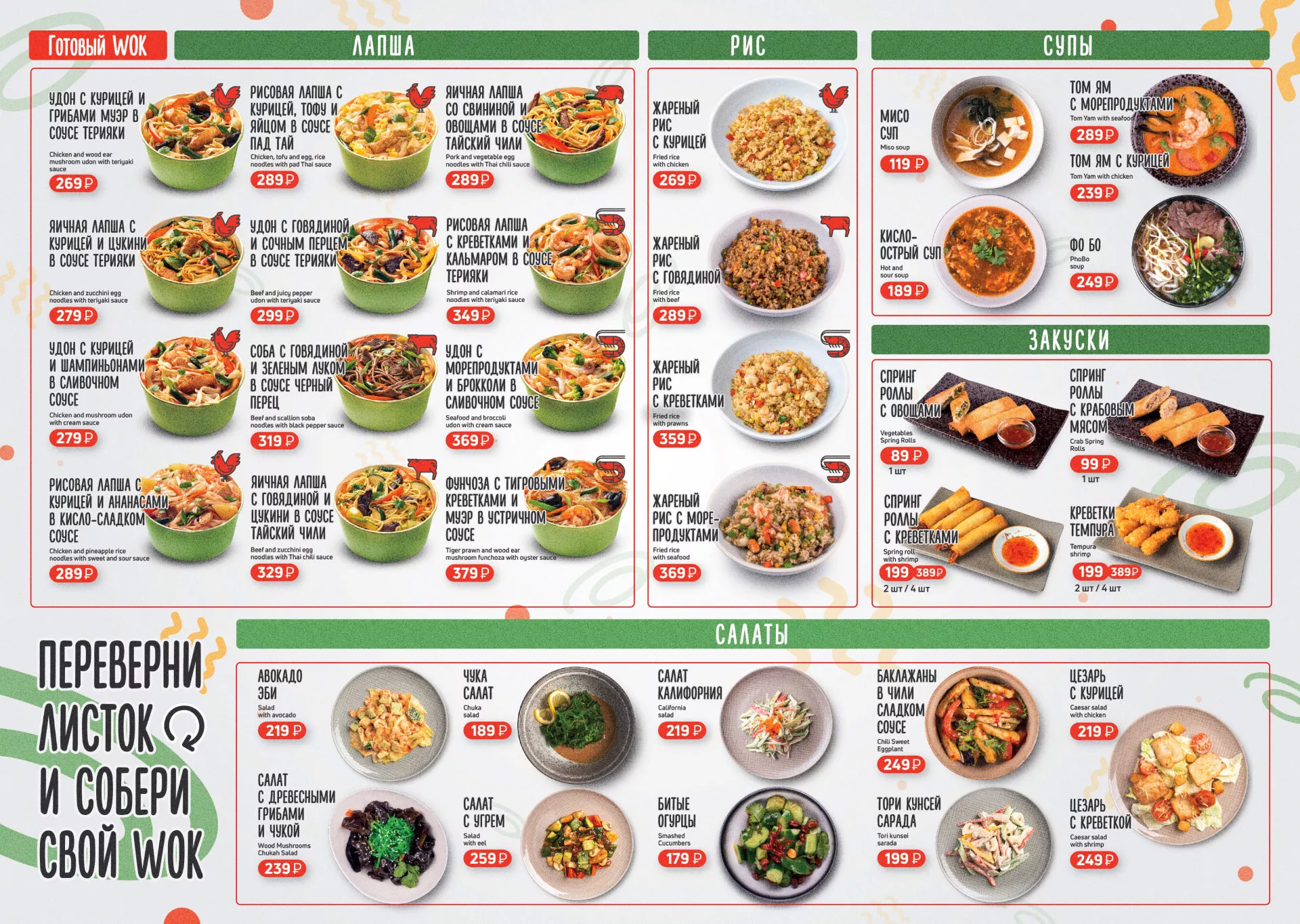 Поверни листок — собери свой вок! Другими словами, мы добавили в и без того вкусное и аппетитное меню немного дружелюбия.