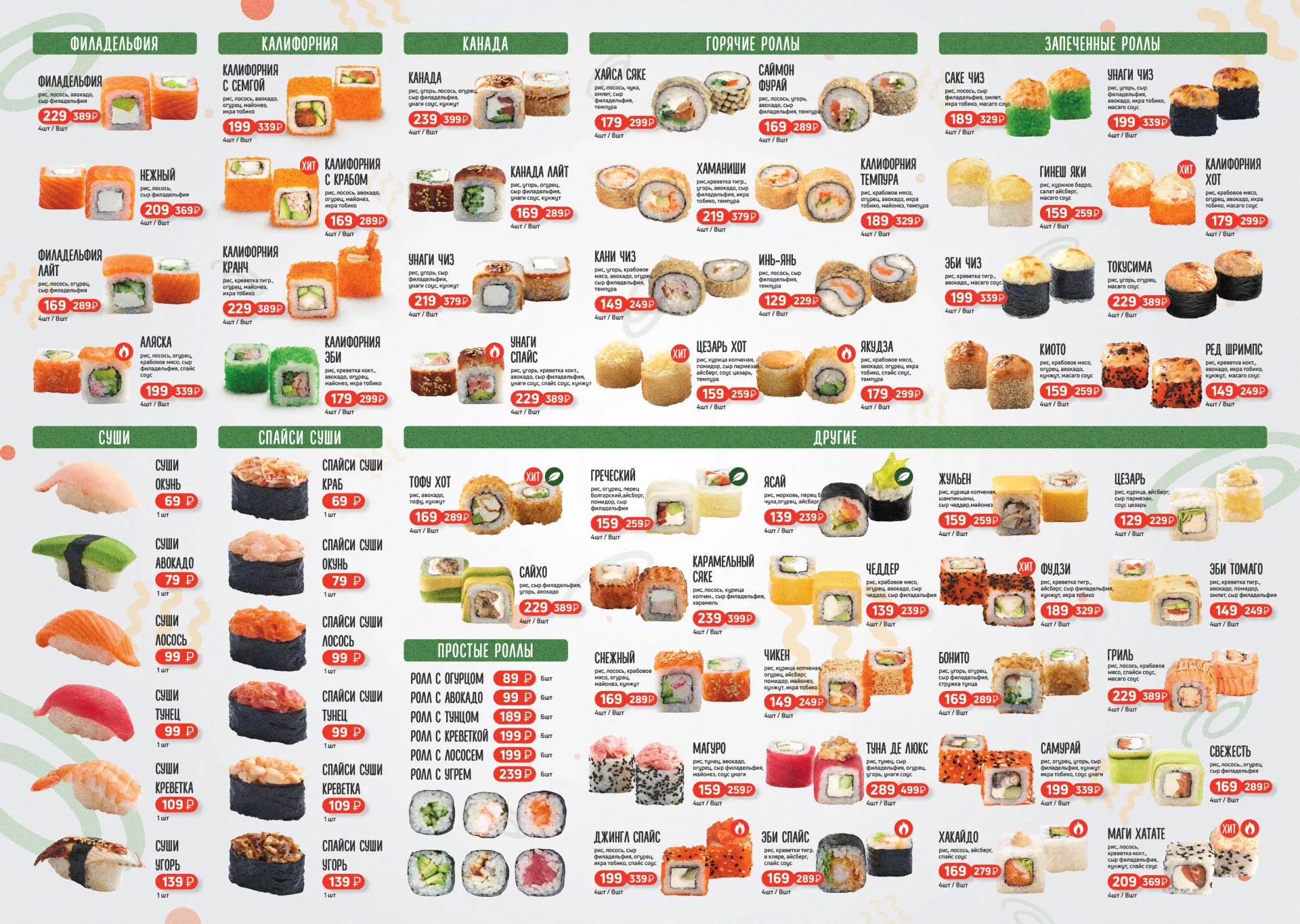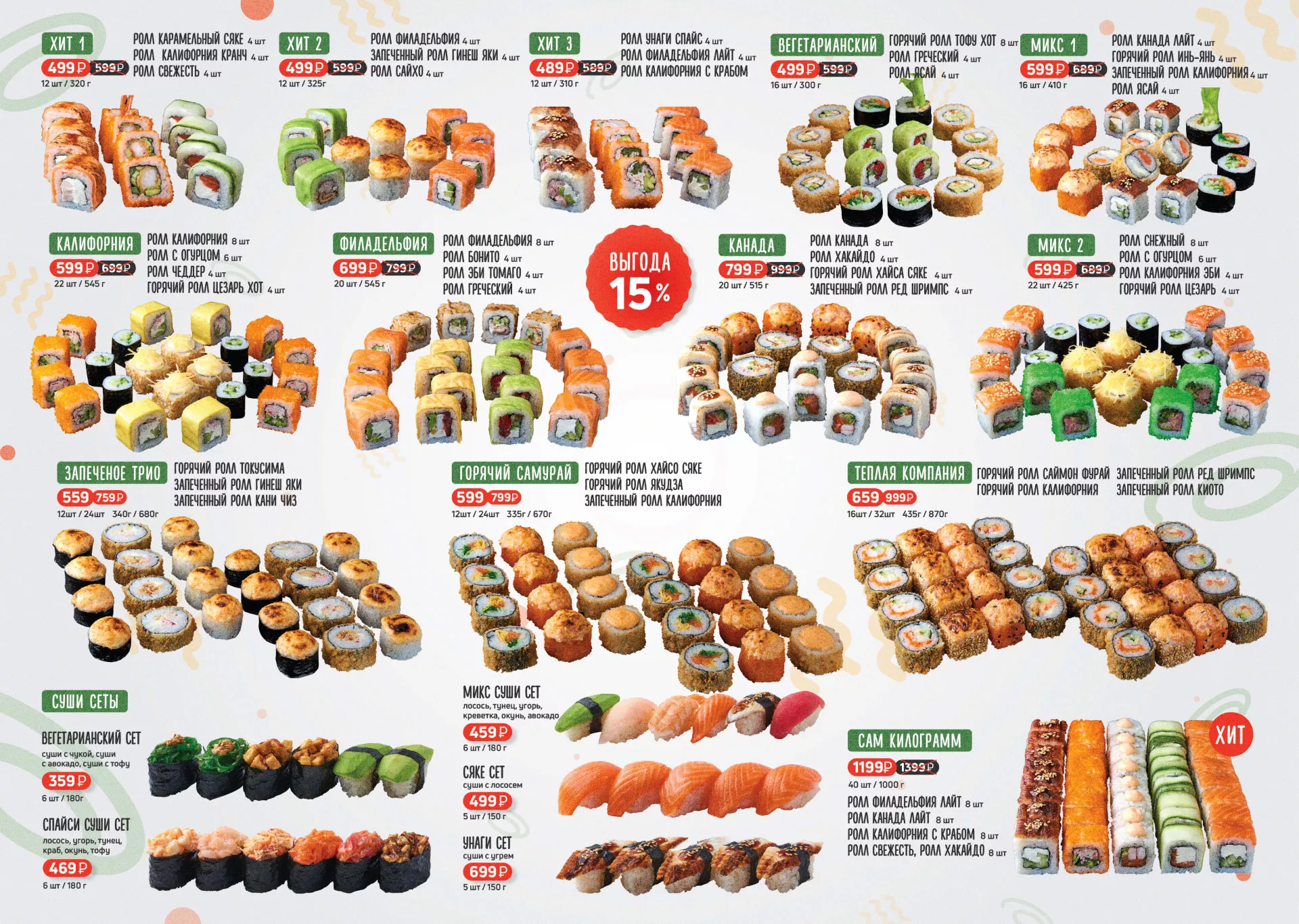 Оформление меню суши-бара «Roll Wok Club» в Кировске