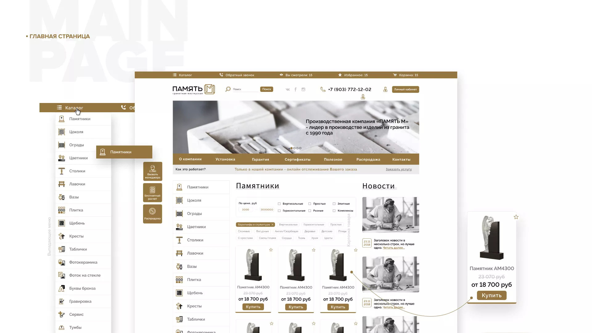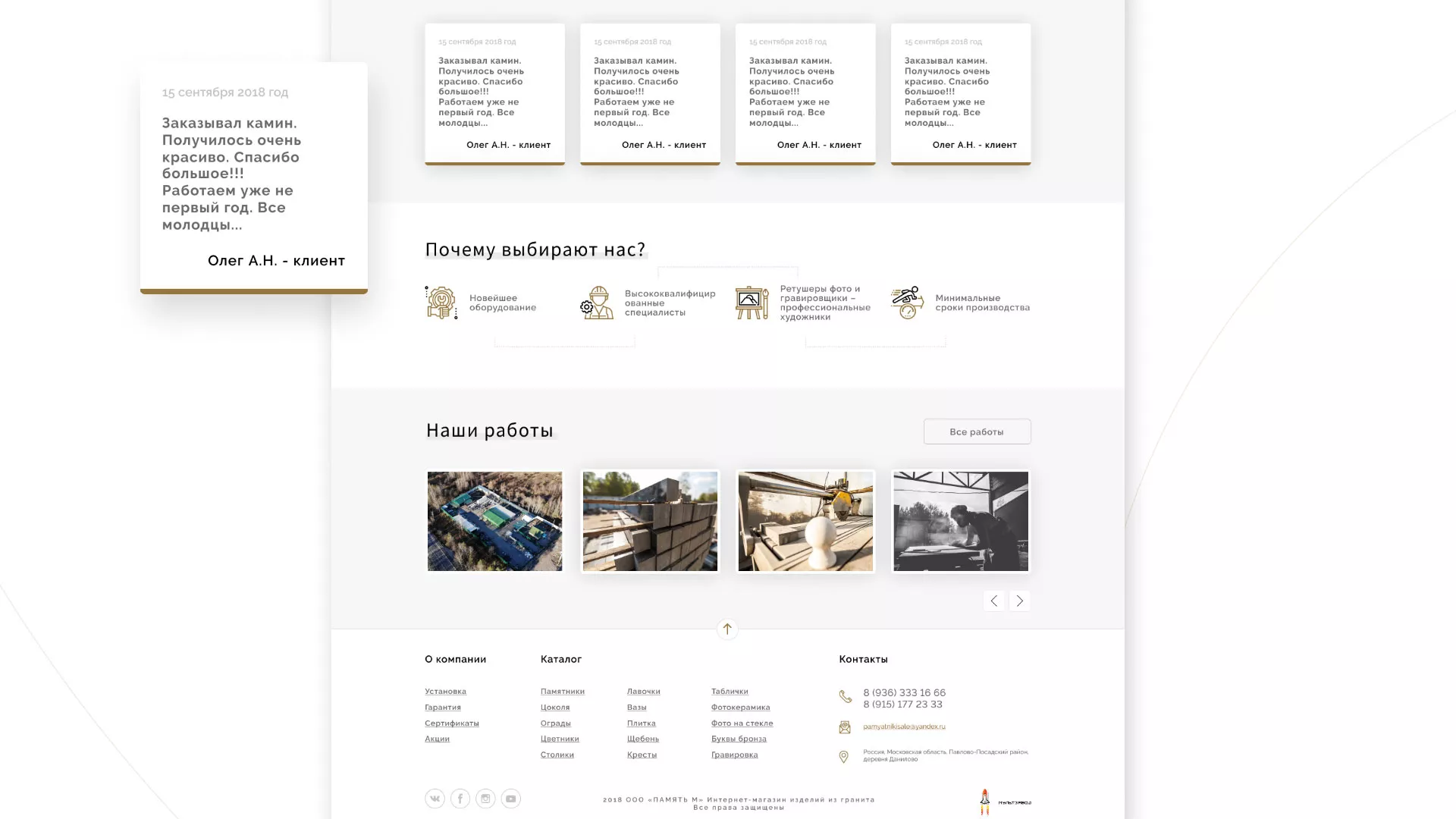 Разработка логотипа, фирменного стиля и сайта в Кировске для компании «Память-М». Компания является предприятием по изготовлению всех видов надгробных сооружений: памятников, цоколей на могилу, оградок, столов, лавочек, ваз, балясин, плитки, мемориальных комплексов. Компании «Память-М» изготавливает все виды мемориальных изделий на собственном производстве в Кировске.