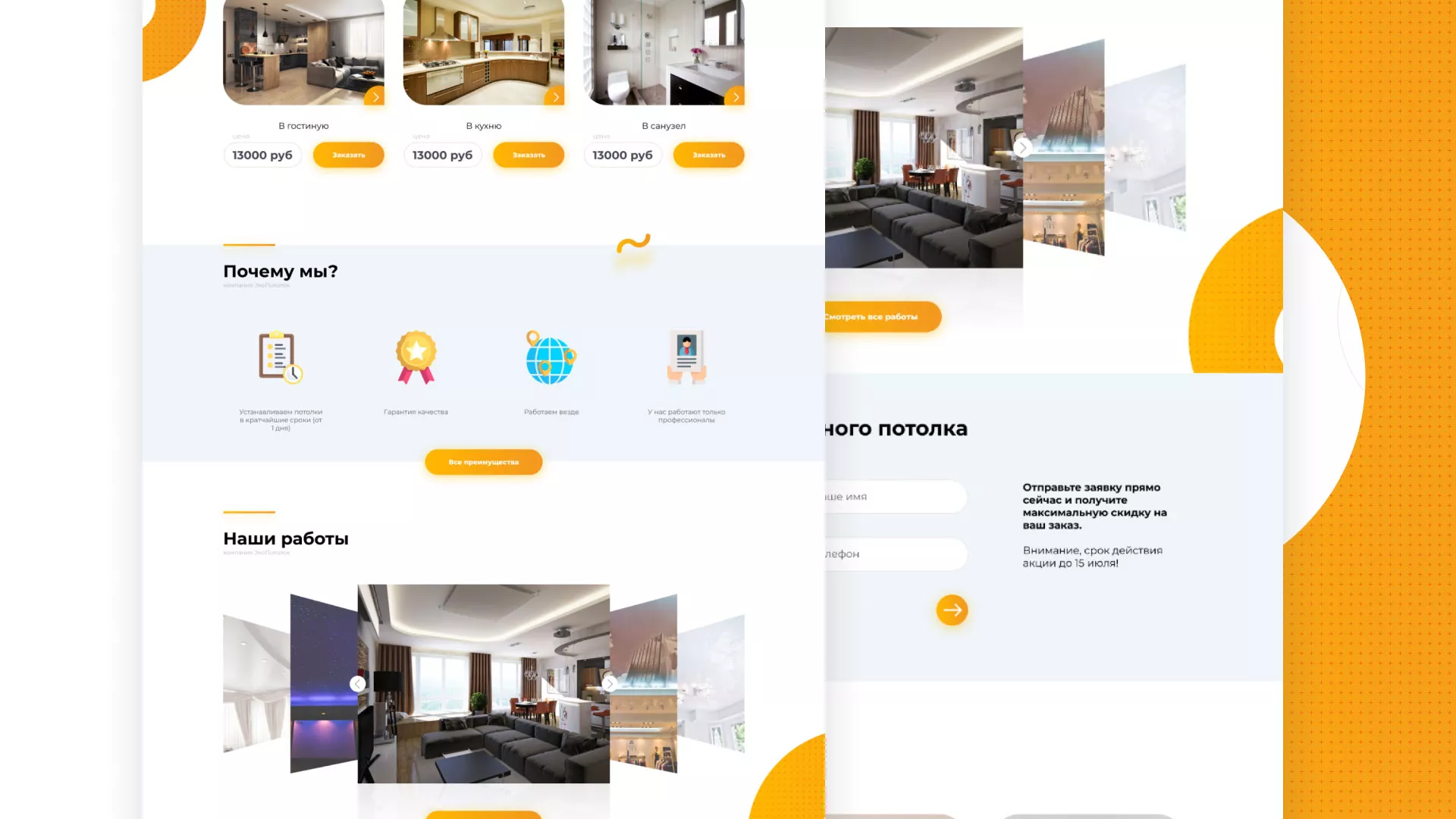 Вам нужна разработка сайта по натяжным потолкам в Кировске? Специалисты компании «Мультзавод» готовы помочь! Мы предлагаем большой выбор уже готовых вариантов, а также можем создать и что-нибудь новое!