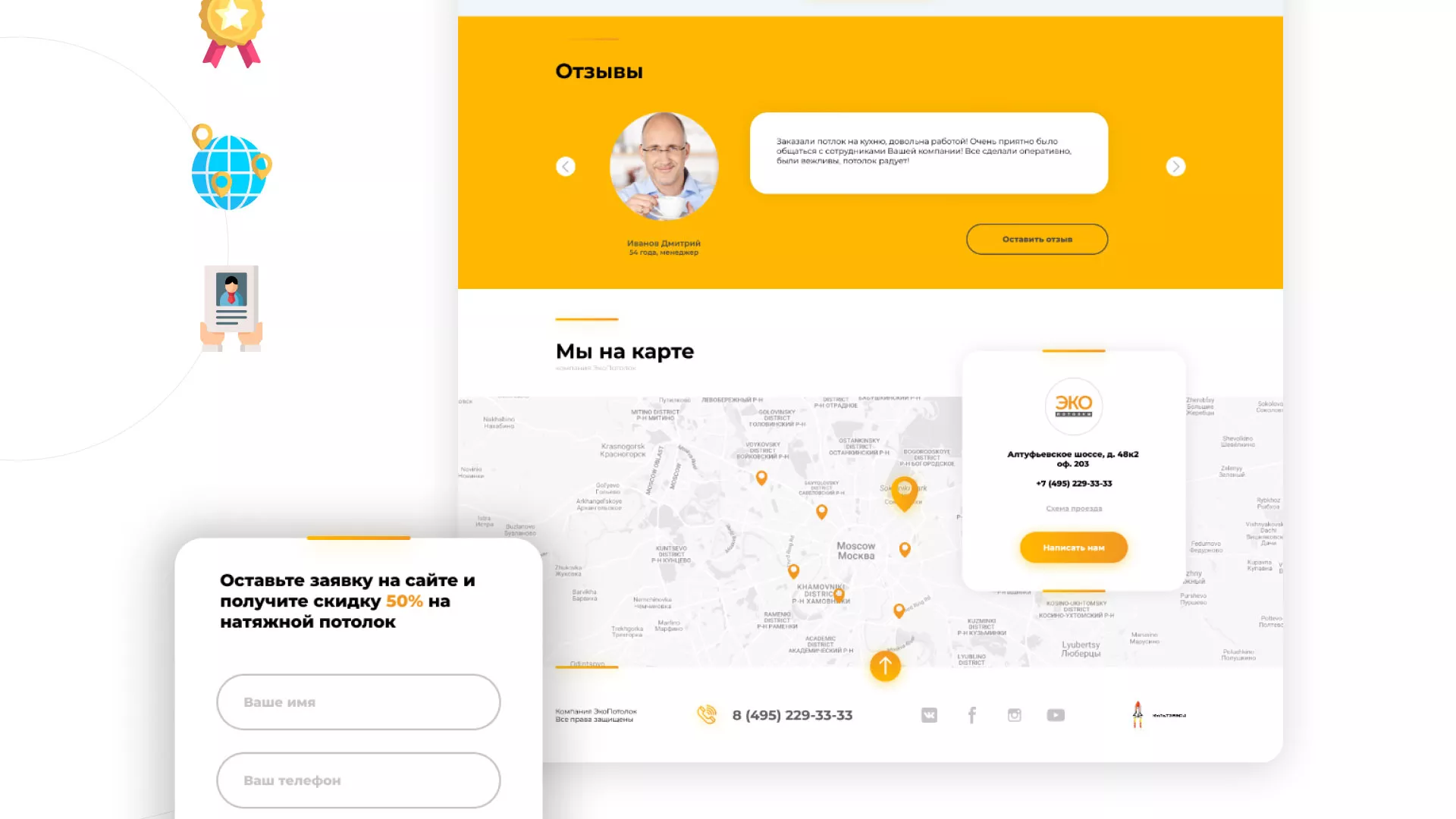 В нашем портфолио в Кировске Вы можете найти большое количество вариантов готовых сайтов, среди которых есть и сайты по натяжным потолкам. Все проекты выполнены с учётом пожеланий заказчиков, многие из которых стали нашими друзьями.
