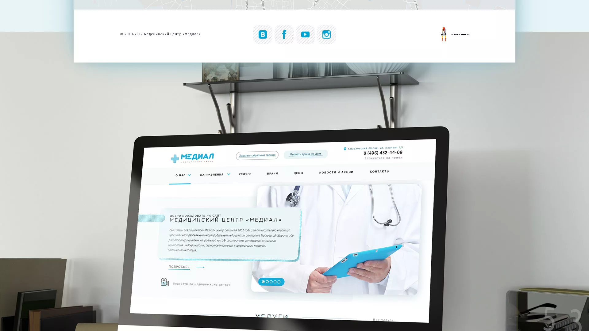 Сайт медцентра «Медиал» в Кировске является «лицом» учреждения, презентует его с лучших сторон, доступно информирует об оказываемых услугах. Он легкий в навигации и использовании. На таком сайте должно быть просто узнать о врачах, услугах, записаться на прием всем возрастным категориям, от 16 до 60 лет. Это должен быть современный, функциональный и эстетически приятный сайт. В рамках создания сайта для медицинского центра компания «Мультзавод» в Кировске ориентируется именно на эту задачу.